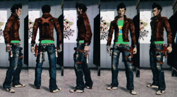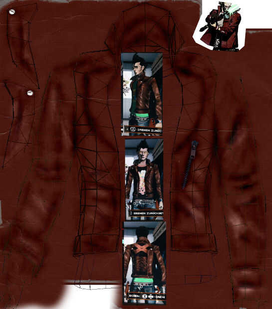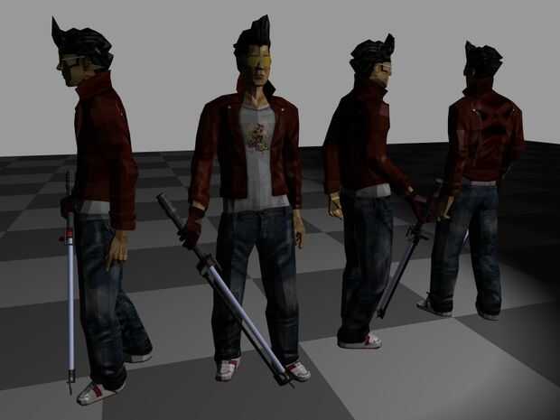 Comencé con buscar fotos de referencia para Travis y su Beam Katana, pero la ganancia era rara, así que tomé algunas fotos de vestuario de Travis en el juego (segundo).
