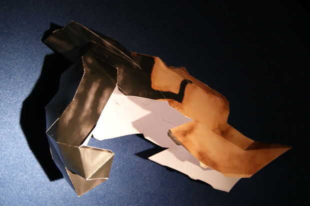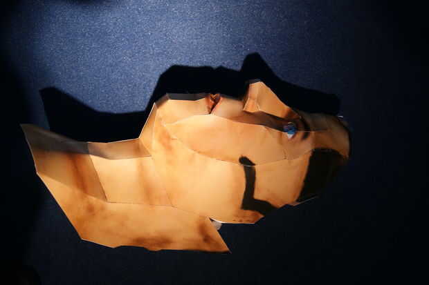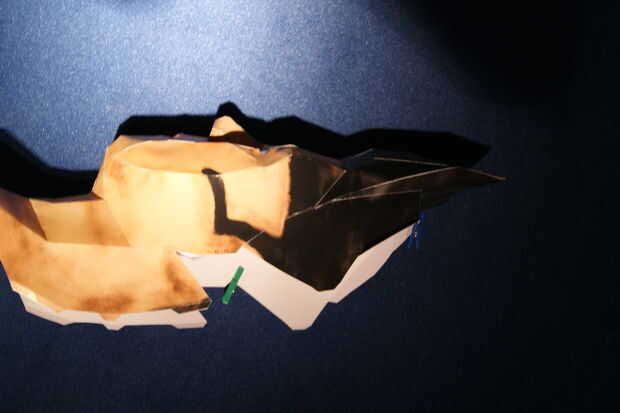 1. Comenzar con la nariz y pegar todas las piezas alrededor de la nariz. Otra vez usted debe construir en el orden de página correcto. Tomé una foto después de cada página, al menos por un lado de la cabeza, el otro no sería una sorpresa más.