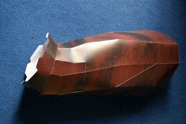 5. Fijar la cabeza al cuerpo - pegar las 4 aletas de frente primero y luego incline la cabeza hacia atrás en las solapas de cuello (ahora estas feliz que hiciste un agujero en la placa de cartón... ¿Se?).