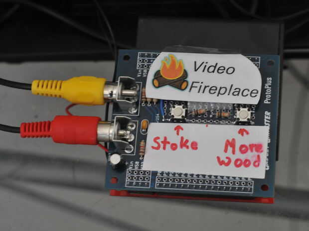 La chimenea de vídeo utiliza dos botones para cambiar de videos, pero se puede utilizar la entrada de un micrófono, sensor de luz, reloj en tiempo real o cualquier otra cosa. ¿Tal vez un reloj de alarma audio visual, o velas de cumpleaños que extinguen cuando usted sopla en el micrófono?