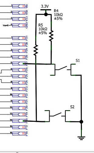 Un interruptor le permite avivar el fuego y el interruptor agrega madera. También usar dos resistencias como 'Finalizar'. Si no utilizas pullups (llamado dejándolas flotantes), el estado del pin puede ser no fiable, así que es mejor conectar la clavija en un estado conocido para cuando los interruptores están abiertos.