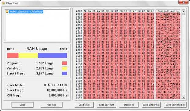 Pulse el botón 'load EEPROM' y la hélice herramienta actualizará la hélice plataforma USB. Si la herramienta de la hélice no es el programa predeterminado para archivos de .binary, puede abrir el archivo dentro de la herramienta de hélice utilizando el archivo -> Abrir menú.