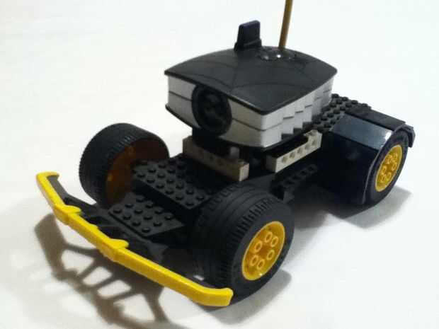 he podido encontrar un EYESPY Spyder Cam(1) en buena voluntad. Varios hacks para él vinieron a la mente, pero la más simple fue conectarlo a un vehículo de control remoto. Tengo un viejo Lego Radio Control Racer(2) que ha sido recopilación de polvo así que decidí usarla para este proyecto. Es una estructura muy simple: hacer un montaje en el coche RC base de la leva del Spyder y luego usar el coche RC remoto para impulsar el corredor mirando el video en vivo en la pantalla de video Spyder Cam.