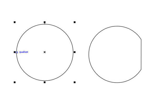 Seleccione el círculo a la izquierda y luego coloca el ratón sobre el punto del cuadrante izquierdo. Ahora haga clic en y mantenga presionado.