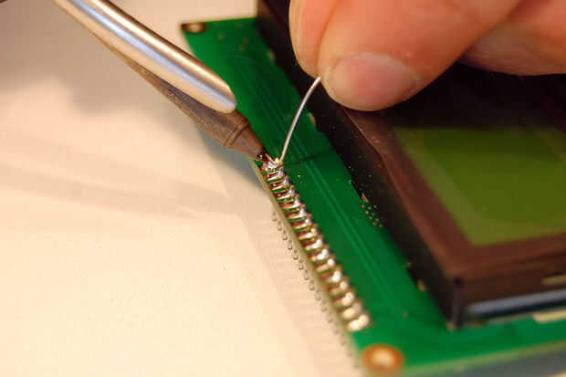Te soldar el LCD ahora. Conectar las patillas de la cabecera a la pantalla LCD y luego soldarlos usando soldadura de hierro como se muestra en la figura.