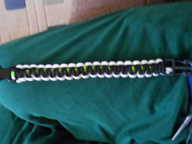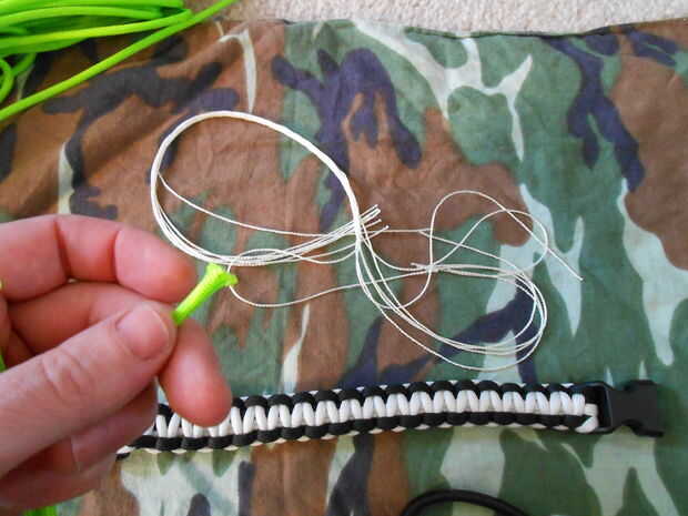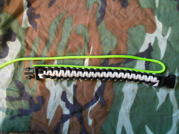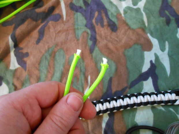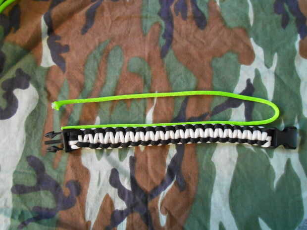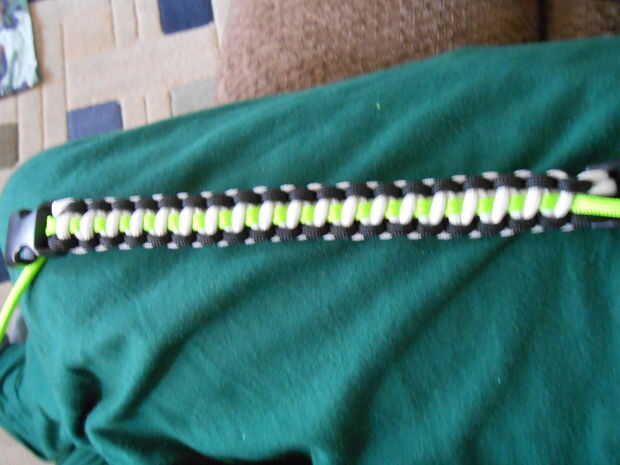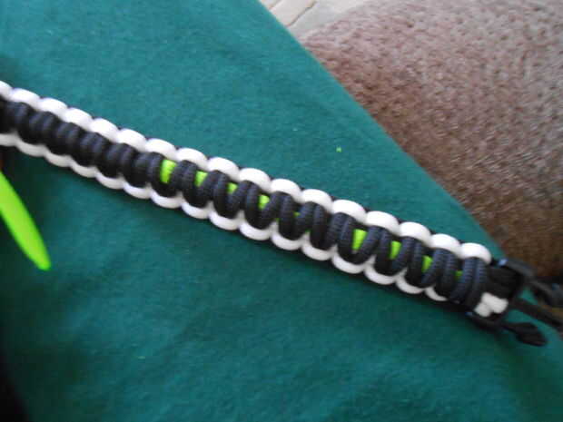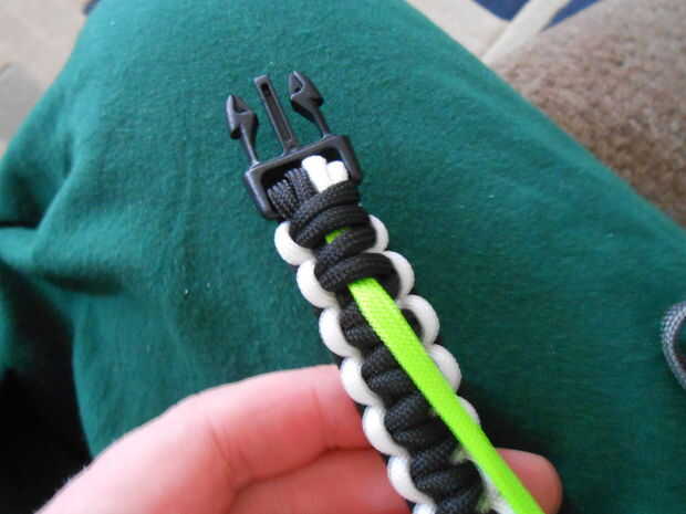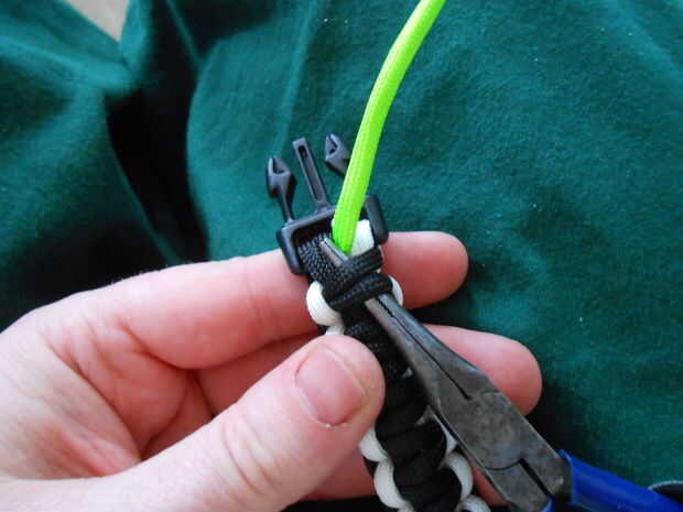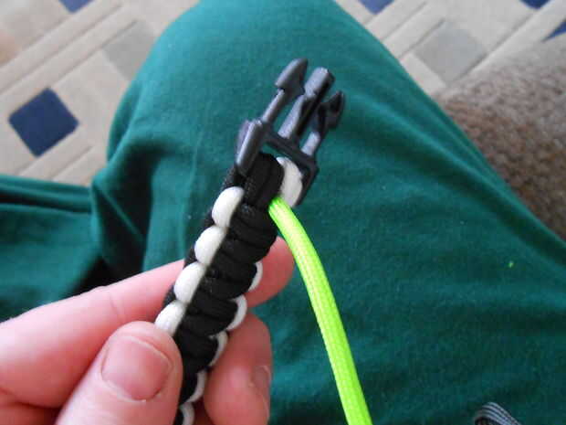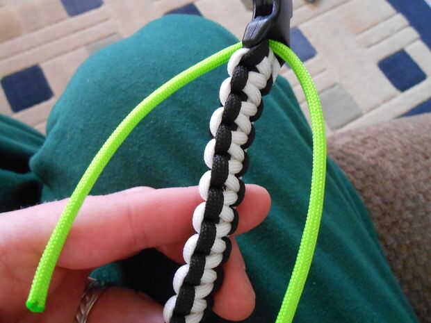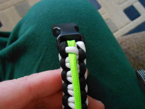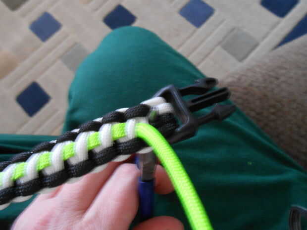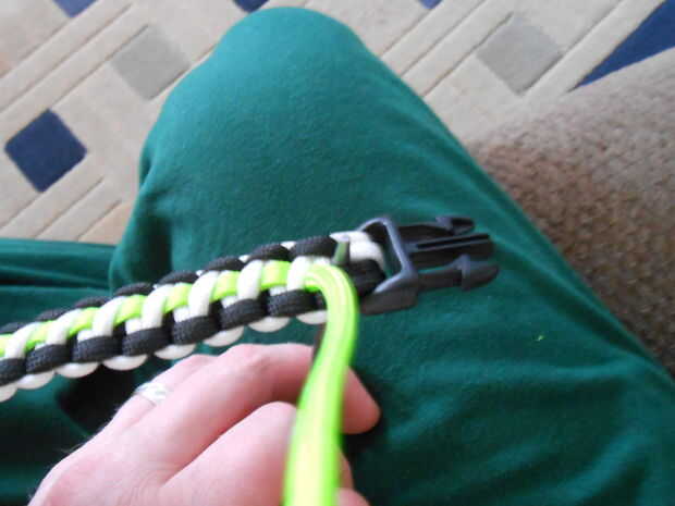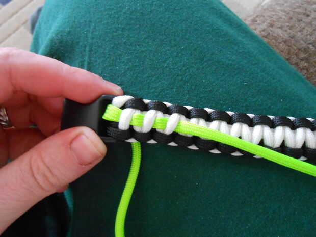 Luego empezar a trabajar la cuerda sobre y debajo de las fotos de frente color principal 8-13. Que hizo cada uno, pero después pensé que podría ser bueno por encima y por debajo que va en grupos de dos. También, es pasar la pieza de flatline a través de los colores principales 2 debajo de la hebilla (visto en los cuadros 11-13) puede hacer esto al principio como una variación bien.