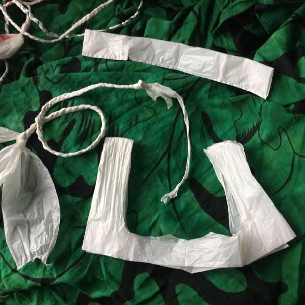 Volver atrás y desdoblar los extremos de la bolsa que cortó en el paso 3.