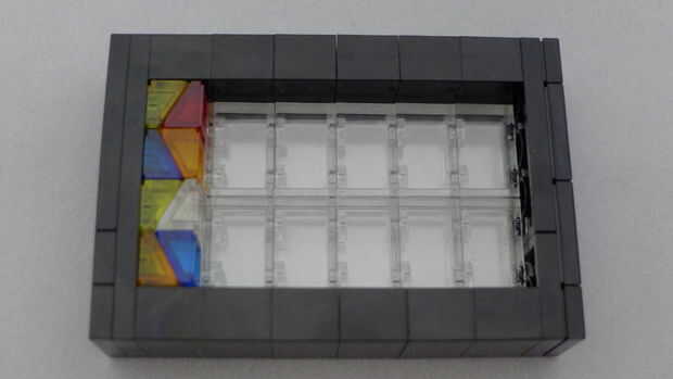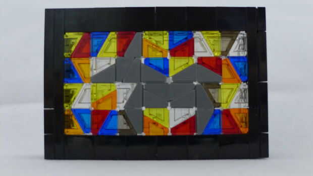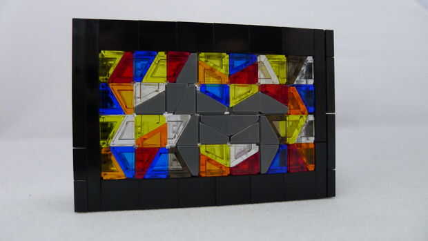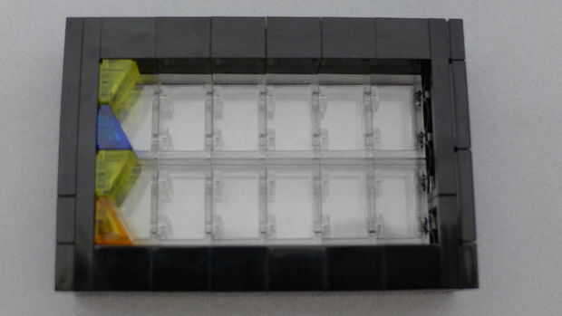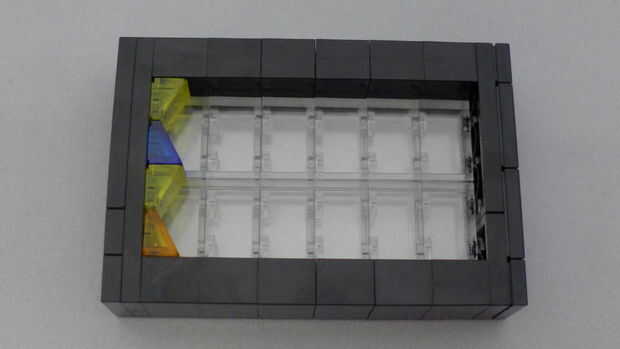 Construí un marco uniendo dos pilas de 6 ladrillos de 1 x 2 en un 2 x 6 basan de dos placas gruesas. A continuación agrega 2 pilas de ladrillos transparentes de 1 x 2 y toped apagado con una capa de placa de 2 x 6 y por último una capa de azulejo. Empecé una capa de anclaje de piezas de queso cuesta fijar a las vigas expuestas 4 y luego en el resto del patrón. Los pares de queso pendientes cuadrados de forma y puede ser en cualquiera de las cuatro orientaciones dependiendo de su patrón.