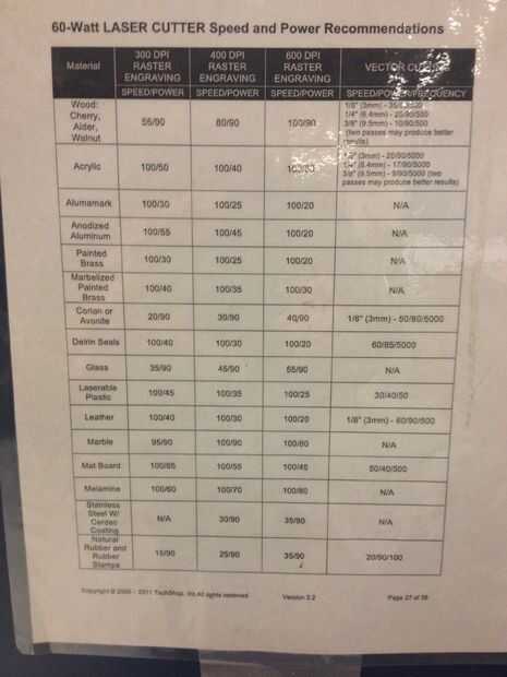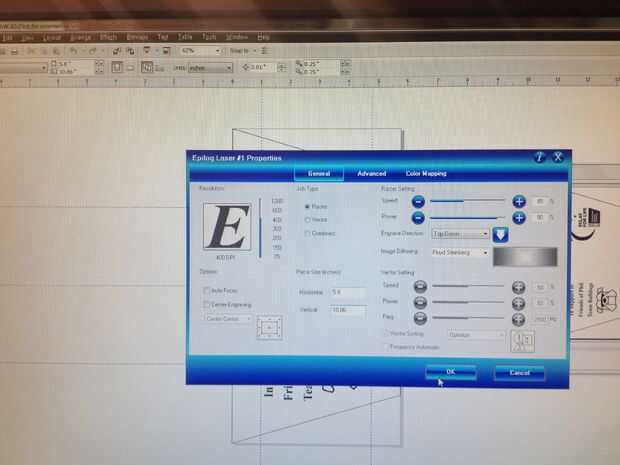 Todavía no tienes mucha experiencia, pero puede ofrecer algunos buenos consejos de mi clase y graba el 12 o lo que he hecho hasta ahora. He encontrado que el Epilog recomendados para el láser de 60 vatios en cuanto a velocidad y potencia en un solo gran trabajan. He estado usando velocidad 45 y potencia 90 con excelentes resultados. Este es el escenario de 400 ppp, así que recuerde cuando esté en la página de propiedades de Epilog para 400 ppp junto con los otros ajustes. El otro valor a tener en cuenta es el tramado y estoy usando al Floyd Steinberg ajuste que está resultando muy agradable.