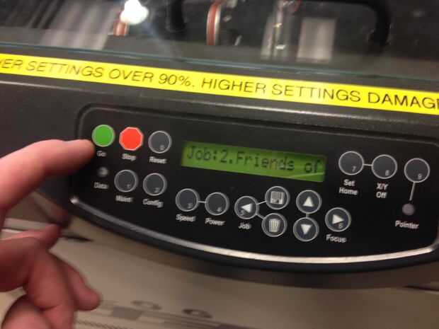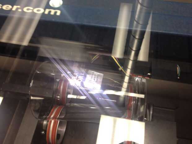 En este punto estamos todo ajustado y listo para grabar. No hago nada especial para el vidrio en cuanto a recubrimiento con periódico húmedo, agua jabonosa o cualquier trickeration como eso. Mi copa está seco, limpie un poco primero con un paño de algodón que probablemente no importa... pones en el grabador y pulsa el botón "GO". El grabador hace el resto de la obra. Una obra maestra de dos caras como esta lleva unos 3-4 minutos a grabar y listo. Estoy muy impresionado con los resultados como la gente que he mostrado mi trabajo hasta ahora!