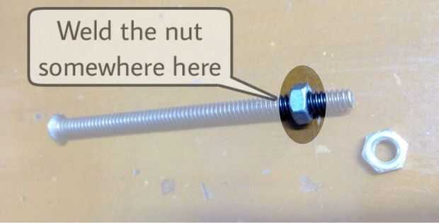Ahora, coloque una tuerca en el perno muy cerca de la parte inferior después de dejar algo de espacio para la lámina de vidrio y la otra tuerca. Es necesario fijar la tuerca 1 permanentemente en su lugar. También ligeramente puede soldar la tuerca en el perno. Estamos casi listos!