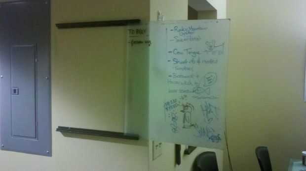 mi novia ha sido la vanguardia de mantener nuestra vida cotidiana organizada y lista. Ella insistia en que conseguir una pizarra para escribir recordatorios diarios y cosas para comprar. Mientras que ella se busque en línea uno, ella vino a través de la pizarra de cristal esmerilado que pensé que parecía realmente agradable y perfecto para mi lugar pero mierda Santa, $100 + por un pedazo de vidrio?? Podía construir uno por menos de $20 dólares y lucky me, tuve un repuesto vidrio helado sentado en mi tronco. Sabía que vendría práctico.