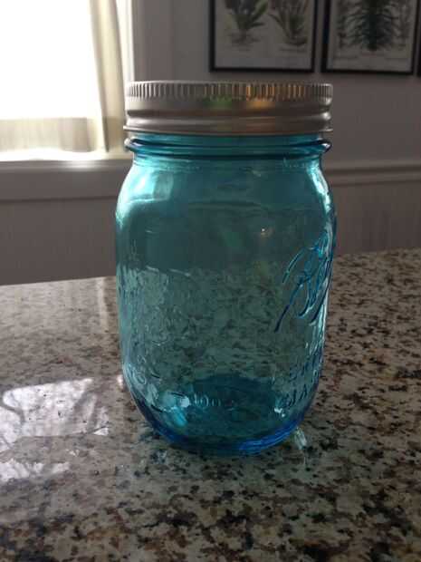 Para crear un efecto de vidrio precioso banderín, cuelgan varios tarros de masón de techo a diferentes alturas con $5 juegos de cables de Ikea. El resultado final es impresionante.