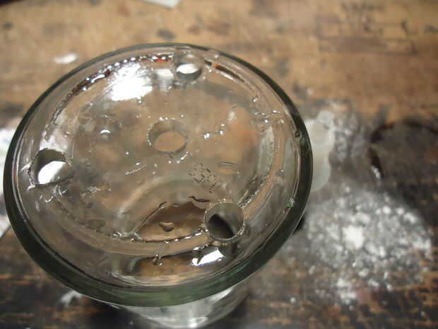 Después de haber terminado los agujeros de perforación, lave la jarra con agua caliente y use un trapo (no la mano en caso de que son fragmentos de vidrio) para ayudar a enjuagar el interior.