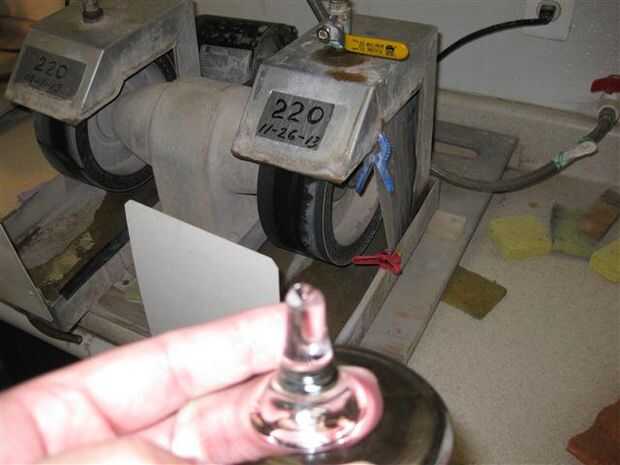 Luego usar niveles de grano más finos para pulir - 220 400, 600 y 1200. Realmente sólo redondean la parte superior del tallo - para evitar los dedos cortados cuando se utiliza.