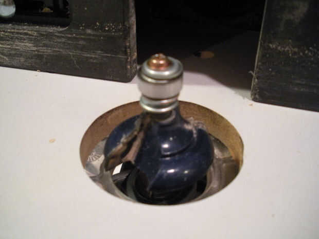 - Configurar el router para el perfil de doble cara. Habrá pasen de bits que hacen esto de una vez pero usé una 1/2" clásica con el rodamiento de conducción superior a la normal. Y routered de ambos lados. Ver imagen