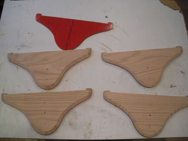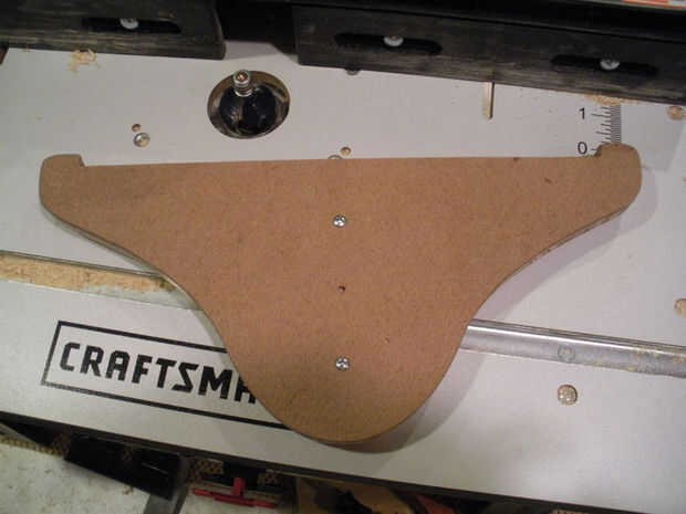 - Utilizar alguna cinta adhesiva doble cara para fijar la plantilla a un soporte áspero cortado. También puse algunos tornillos en el medio, ya que ellos serán perforados hacia fuera más adelante para montar el soporte a los postes.