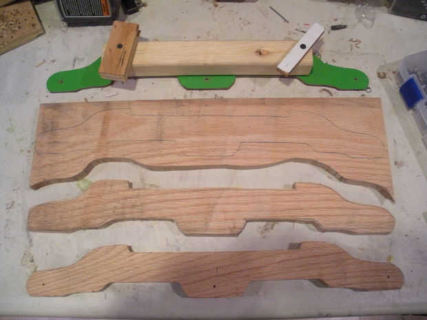 Acabado: 4 sets de los pies que se han lavado ajustado a la plantilla, 2 debe pegadas para hacer 1.5" de grueso. Había querido pasador barra utilizando los orificios, pero debido a cierta confusión, los agujeros no estaban en los lugares correctos y no línea.