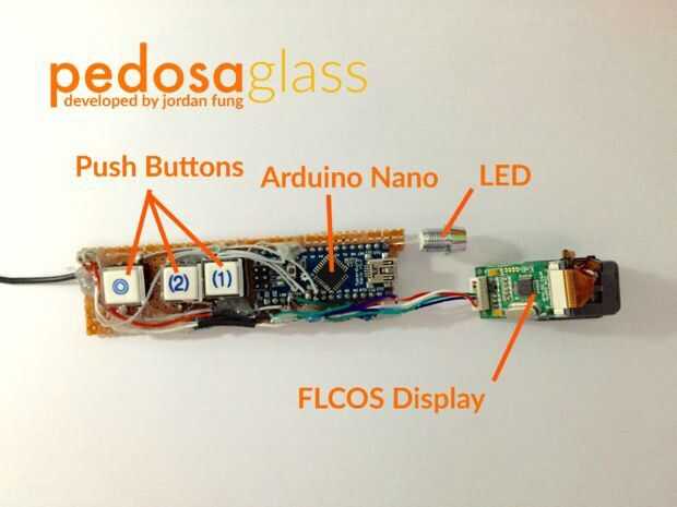 El Pedosa Glass es accionado por un solo Arduino Nano ejecuta un "sistema operativo" desarrollado por mí.