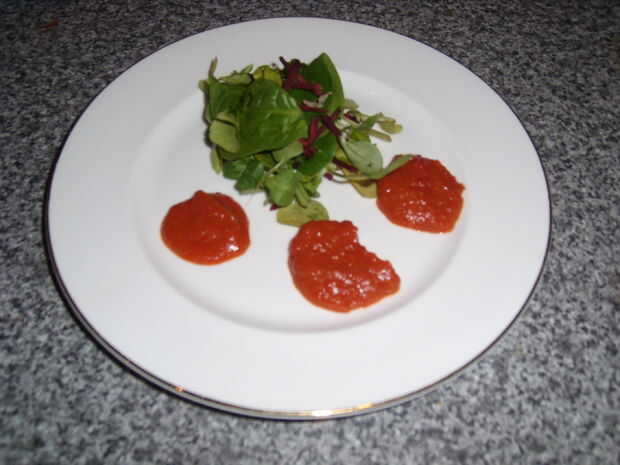 - Colocar 3-5 cucharadita corone de la salsa alrededor de las hojas de ensalada