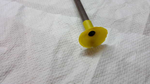Utilizando la parte superior de la carcasa de plástico Retire la pieza de extremo donde la cadena entra y utilice la pieza de tubo y colóquelo en el extremo de la pieza de barra para un protector de boca... ESO ES EL GOLPE TUBO COMPLETA...