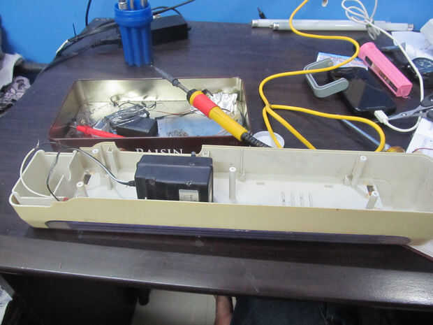 1) reemplazar los componentes viejos con el adaptador de 12v y luego las dos clavijas macho directamente al alambre de la soldadura. No recomiendo quitar el adaptador porque los cables son para minutos y una vez que el alambre se corta lo es difícil de soldar ya que era un producto de china
