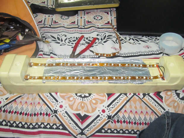 4) pegar las tiras de LED comprobar una vez y fijar el caso
