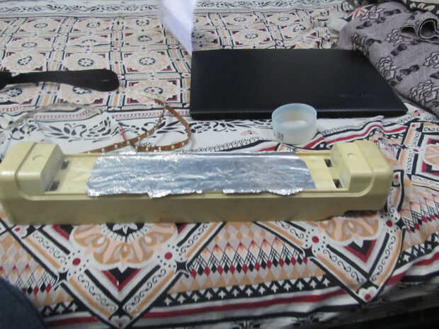 3) Conecte el positivo y negativo terminales correctamente. Pegar el papel de hoja de lata para la reflexión. Ver que una vez que la hoja de papel se pega usted sellar completamente con cinta transparente. Si no aíslan correctamente conseguirá corto circuito ya que es un conductor