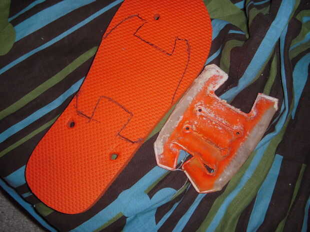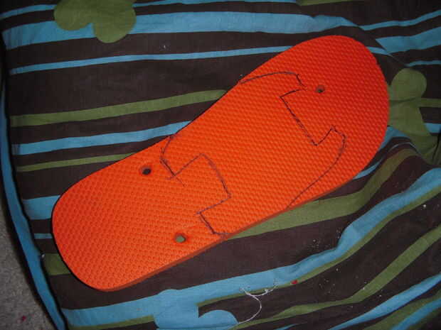 Sujete la almohadilla del aire a través de la sandalia. (Ojalá sobre una pieza sin los agujeros)