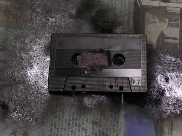 Viejas cintas de audio en impresionantes decoraciones de Halloween