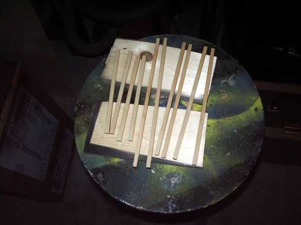 Algunos madera contrachapada gruesa de 1/8 pulgadas, hice rejillas de altavoz para cada caja (Foto 1), entonces mancharon los (Foto 2). Las barras verticales en la parrilla fueron cortadas de un pedazo de madera cuadrado de 1/4 de pulgada que compré en una tienda de artesanía (Foto 3).