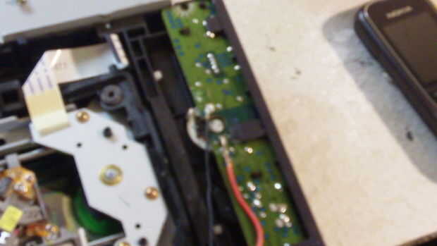 Con el soldador, re derretir las soldaduras e inserte alambre soldadura fundida, uno positivo y uno negativo. Asegúrese de que usted tira cada extremo antes de soldar. También asegúrese de que los cables sean lo suficientemente largos para llegar a exterior de la caja.