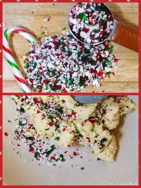 Generalmente me gusta usar Extracto de menta un poco con las piezas de caña de azúcar, pero es difícil de mezclarse a la masa de galleta acabada. Difícil pero no imposible. Lo he hecho antes y funcionó.
