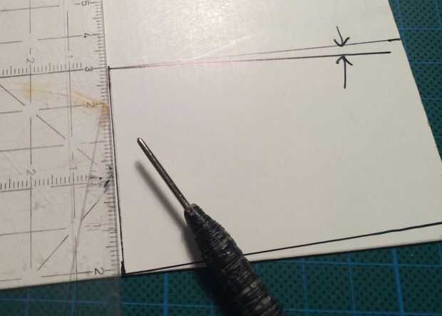 Cualquier cosa con una punta no muy afilada, pliegue la línea de plegado para evitar que el cartón de última hora. Una vez hecha una herramienta arrugar para mi hobby de papercraft de una aguja gruesa de zurcir y una lápiz viejo, envuelto en hilo y pegamento. Pero también funciona un bolígrafo.