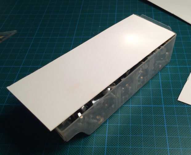 Doblar e introducir en el cajón de piezas. Esto no debería ser ningún problema, incluso si el cajón está lleno. El contenido del cajón mantiene la tapa en su lugar. Si las dimensiones son adecuadas, la tapa evitará que el contenido bloquea el cajón.