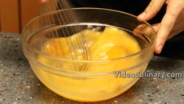 Mientras tanto, romper 7 huevos en un bol y mezclar.