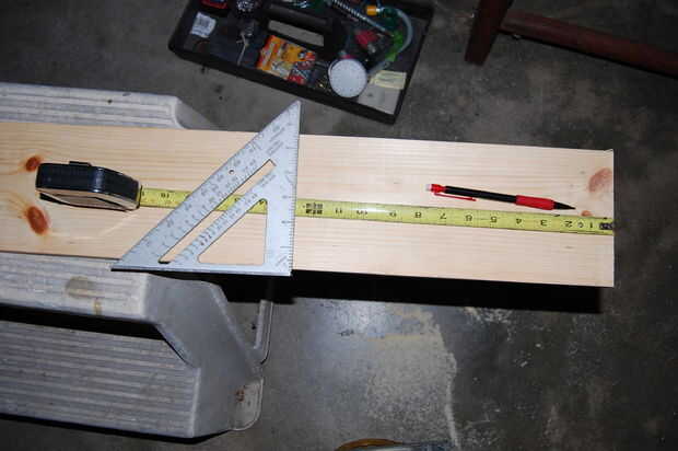 Una vez que se cortaron los lados, una línea marcada en la cara de dos tableros para mostrar donde necesito hacer para los tornillos que aseguran los lados juntos. Alinearon las piezas lo mejor pudo y taladrados para los tornillos.