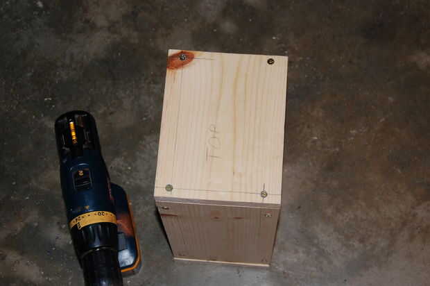 Después de asegurar los lados junto con algunos tornillos de madera, marcó y cortar las piezas de madera que se convirtió en la parte superior e inferior.