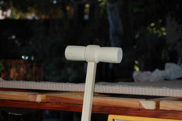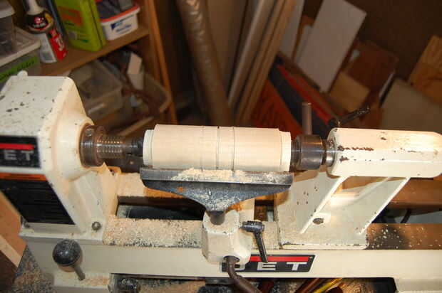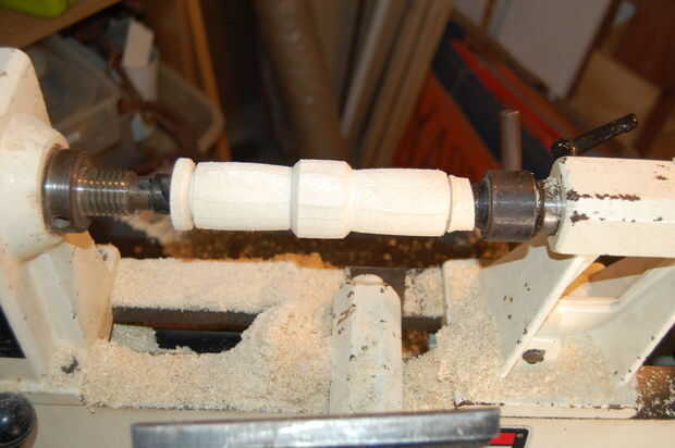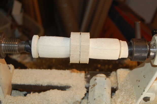Un escoplo se utilizó para retirar el material a granel de las piezas de agarre primero. Un cincel para sesgar y Zapata fueron utilizados para asegurarse de que la superficie era el mismo diámetro y recto. Después estaban las asas, la porción central fue rechazada también a su tamaño final. Una vez yo estaba feliz con la mirada, fue lijada con papel de arena de grano 120 y 220.