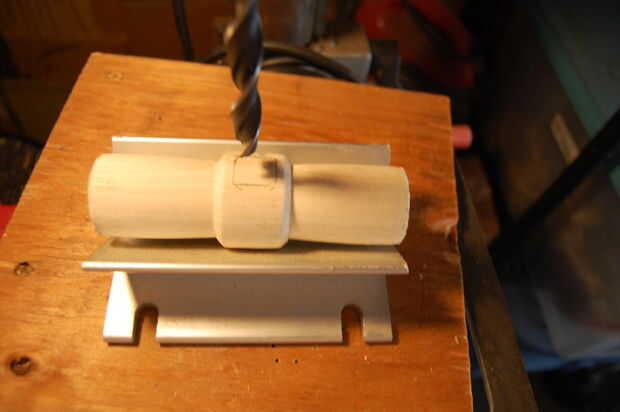 El área donde se coloque el pasador cuadrado estuvo marcado en el mango y una prensa del taladro fue utilizada para quitar la mayor parte del material. Para eliminar el material restante, se utilizó un cincel para chip tallar un agujero cuadrado.