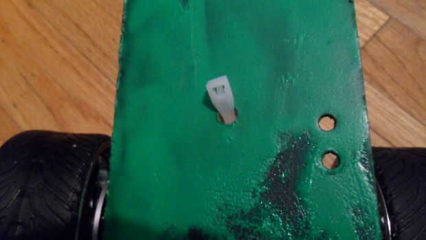En la brida del motor. Puede que necesite otra amarra porque podría ser un poco a grande. Y el motor según el tamaño debe ser perfecto para la plataforma.