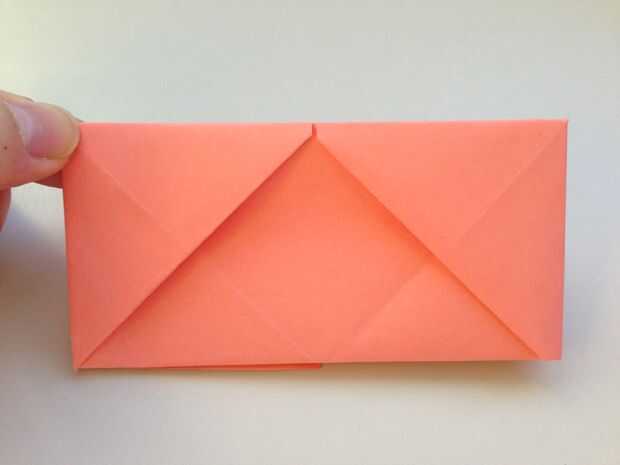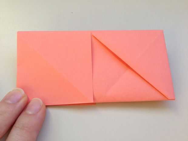 Una vez que usted haya terminado, usted verá que ambos lados tienen dos aletas cuadradas con dos lados atados y sueltos dos lados. Tomar la punta de la esquina y dobla el papel dentro de la Plaza. Así que, básicamente, están metiendo en la Plaza y se convierte en un triángulo.