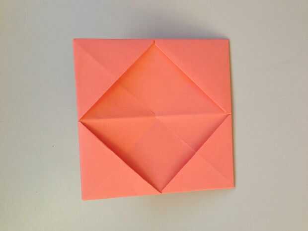 Hacer esto por los cuatro costados. Para referencia, incluí una foto de lo que se verá como una vez que se abre la Plaza y los cuatro lados se pliegan. Las partes dobladas en es donde van los dedos.
