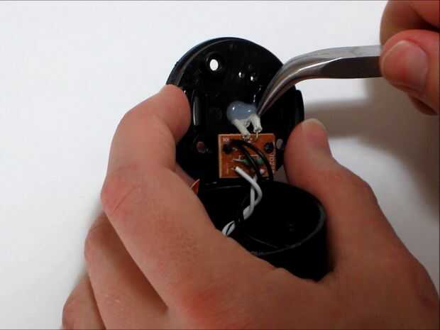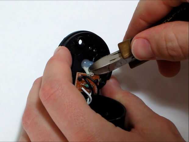 Una vez abierta la caja, localizar los cables de lo LED y en que se conectan con el resto del circuito. Cortar uno de los dos cables en el punto medio de los cables expuestos y remover cualquier material aislante. Esto es donde se conectan dos cables nuevos que actuarán como un interruptor sensible del viento. Este interruptor será para alimentar el LED sólo cuando en el viento.