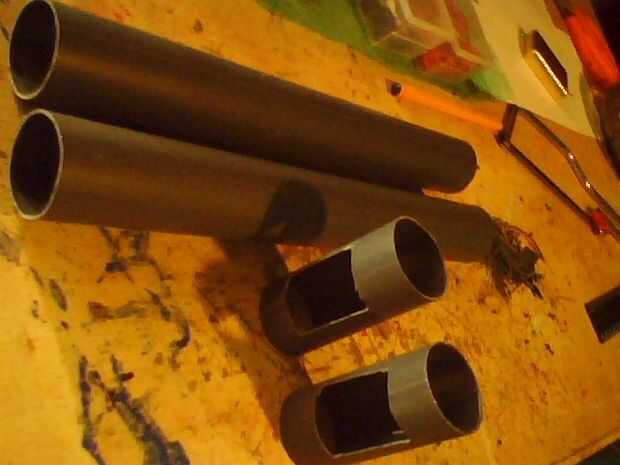 1:Saw el PVC tubos demasiado el tamaño deseado, alrededor de 1,5 pies más o menos de ti y repetir tantas veces como sea necesario para cada turbina de vivienda y cortar alrededor de 2/3 de pulgada del tubo como muchas veces ya que hay turbinas, esto será el motor de la vivienda, ahora corte un círculo/cuadrado en medio de las secciones más pequeñas ver fotos.