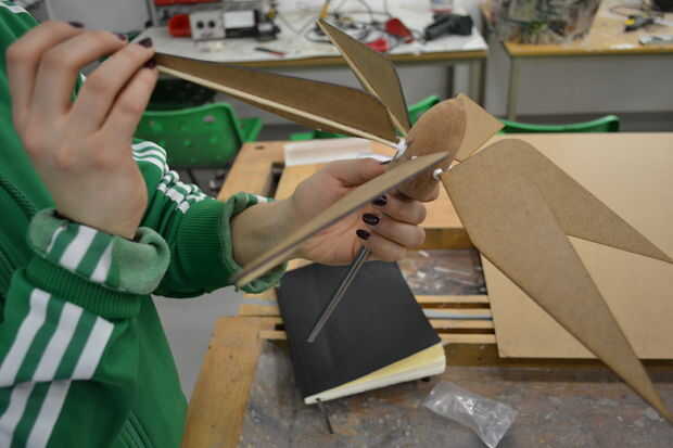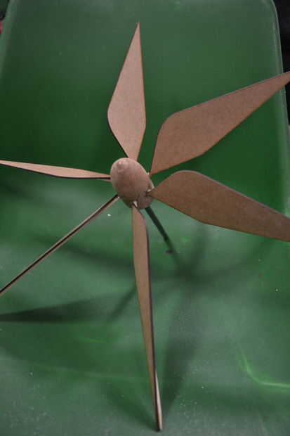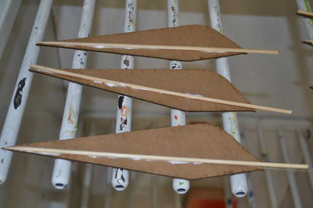 La varilla de madera fue cortada a 200mm de longitud y pegada en la parte posterior de la hoja como se muestra.