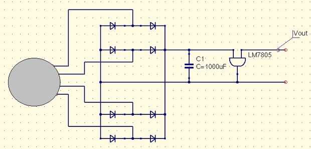 Nota 1: este motor puede generar fácilmente más de 5V, pero sólo necesito 5V por el camino.