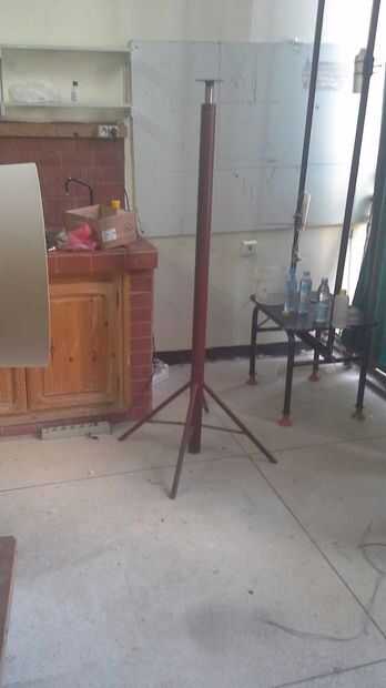 Realmente trajo la torre de la chatarra era Ideal para mi proyecto: 2 metros de altura con un diámetro de 6,5 cm y una fijación a la tierra. Por lo que solo pareció él y añadió a su soldadura pequeño cilindro superior con rodamientos para hacer mi sistema de orientación.