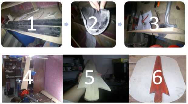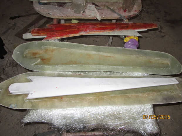 - El material a utilizar: en realidad puede utilizar madera, aluminio o resina. Para mí fue más fácil de usar resina porque funcionaba para obtener cualquier forma que desee hasta que empecé a hacer mis hojas con PVC pero fue muy difícil para mí darles forma lo porque hay mucho trabajo detrás. Así que para las cuchillas resina necesitará realizar un mejillón. Así que tomé una viga de madera de 1 m x 10 cm y forma en una lámina que es plana en la parte inferior y redondeada en la parte superior, la forma es aproximada y exactamente calcuated pero le da una hoja agradable si usted forma buena, lo bueno de los mejillones es que le da tres palas idénticas con la perfecta forma de mismo tamaño y peso, que es un factor capital para el equilibrio aerodinámico.