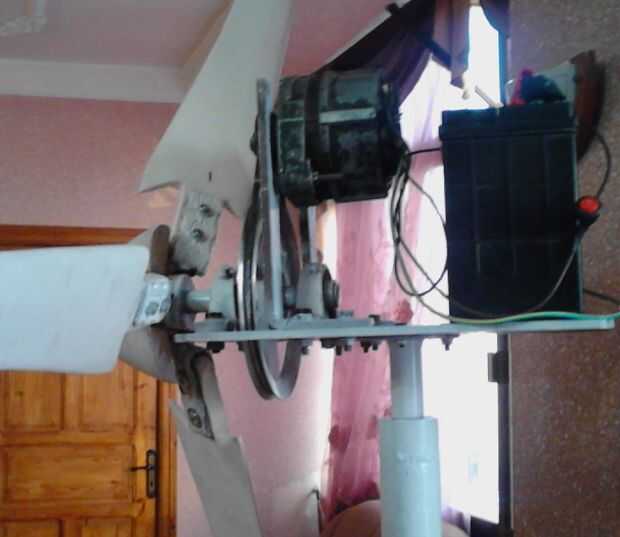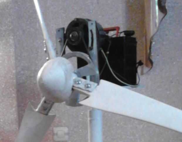 U tres en forma de piezas de aluminio con las láminas donde se fija en la barra de la polea con 120° entre cada uno y otro. La ventaja de una U en forma de aluminio es atornillándolo en la barra de la polea que se pueden ajustar las cuchillas en cualquier ángulo deseado, dependiendo de la fuerza del viento.